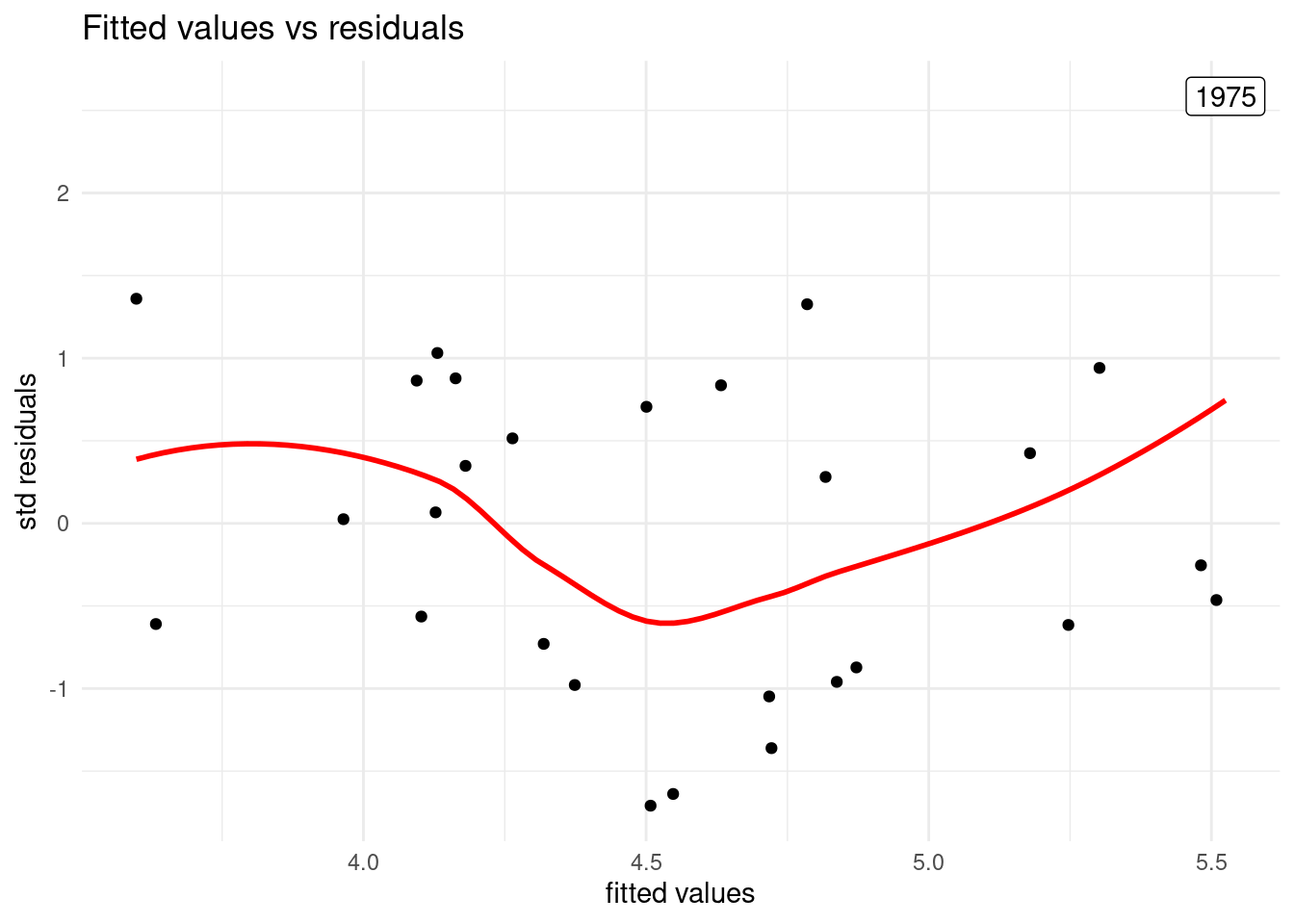 aes(x = .fitted, y = .std.resid, label = year)) +