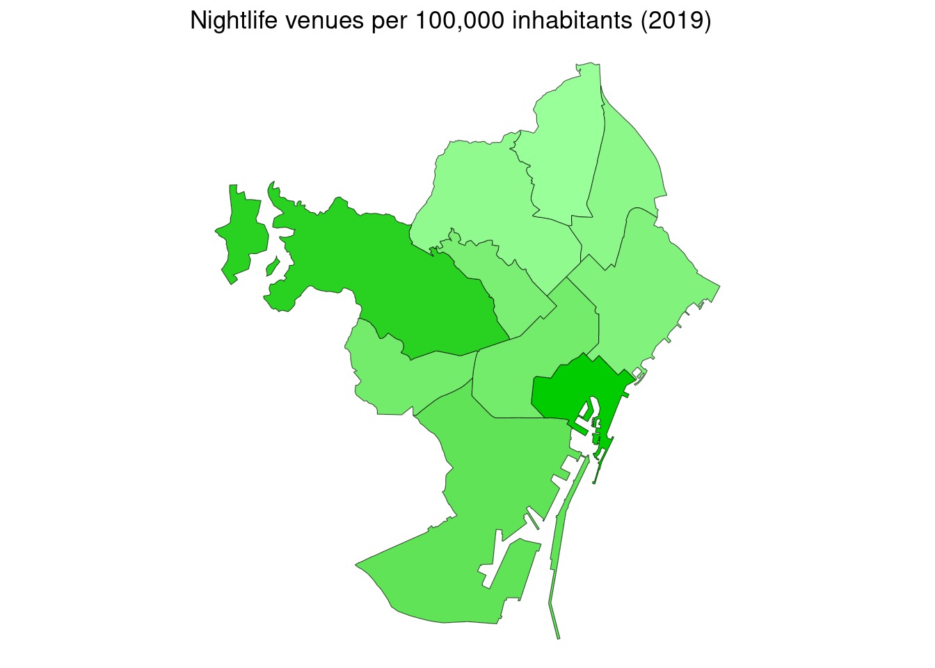 labs(title = "Nightlife venues per 100,000 inhabitants (2019)")